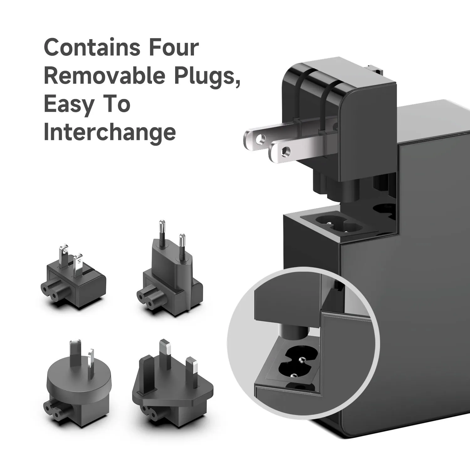 Мултистандардни приклучоци: STARWELL адаптерот за напојување е опремен со 4 типа приклучоци за приклучување (САД, ЕУ, ОК и АД), без потреба од дополнителни конвертори за прекугранично патување.
