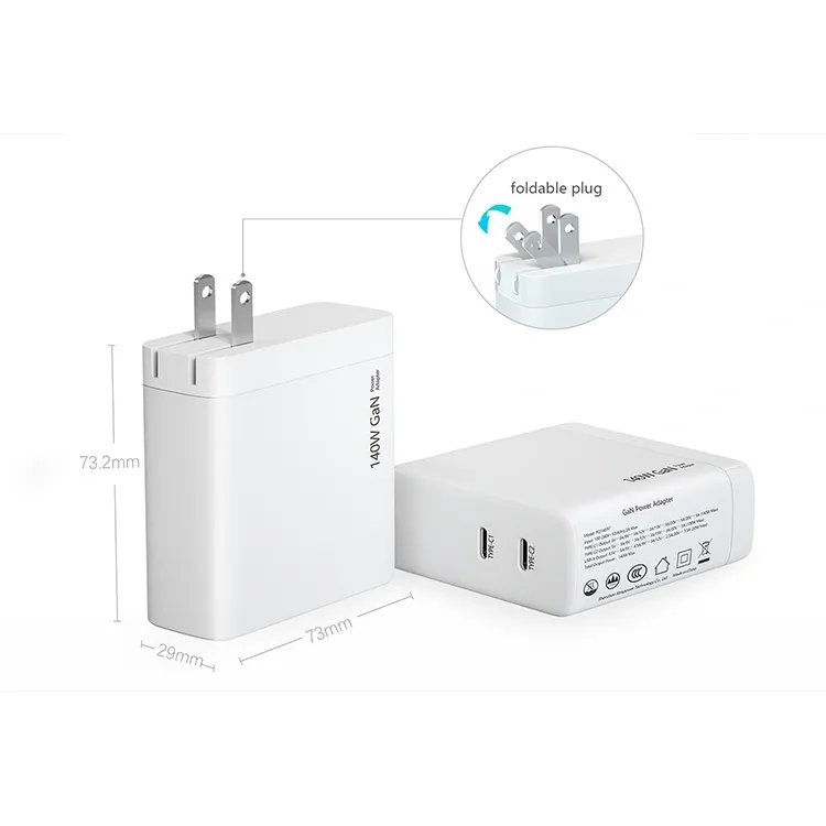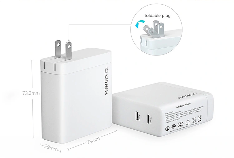 140W двојна USB c порта PD полнач US приклучок со преклопување Спецификација: