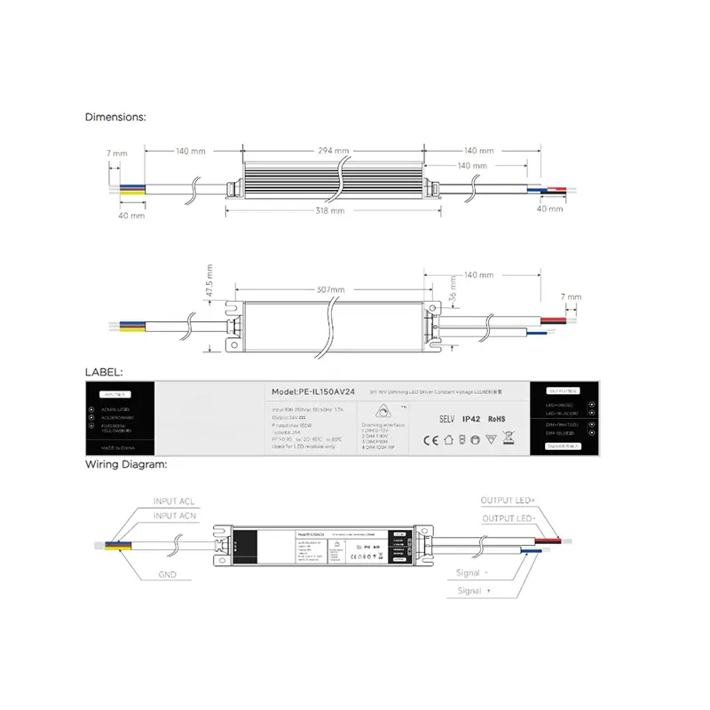 Во согласност со CE, FCC и UL сертификатите, нашиот 150W LED драјвер ги комбинира врвните перформанси со бескомпромисна безбедност - вашиот доверлив избор за инсталации за осветлување од професионален степен.