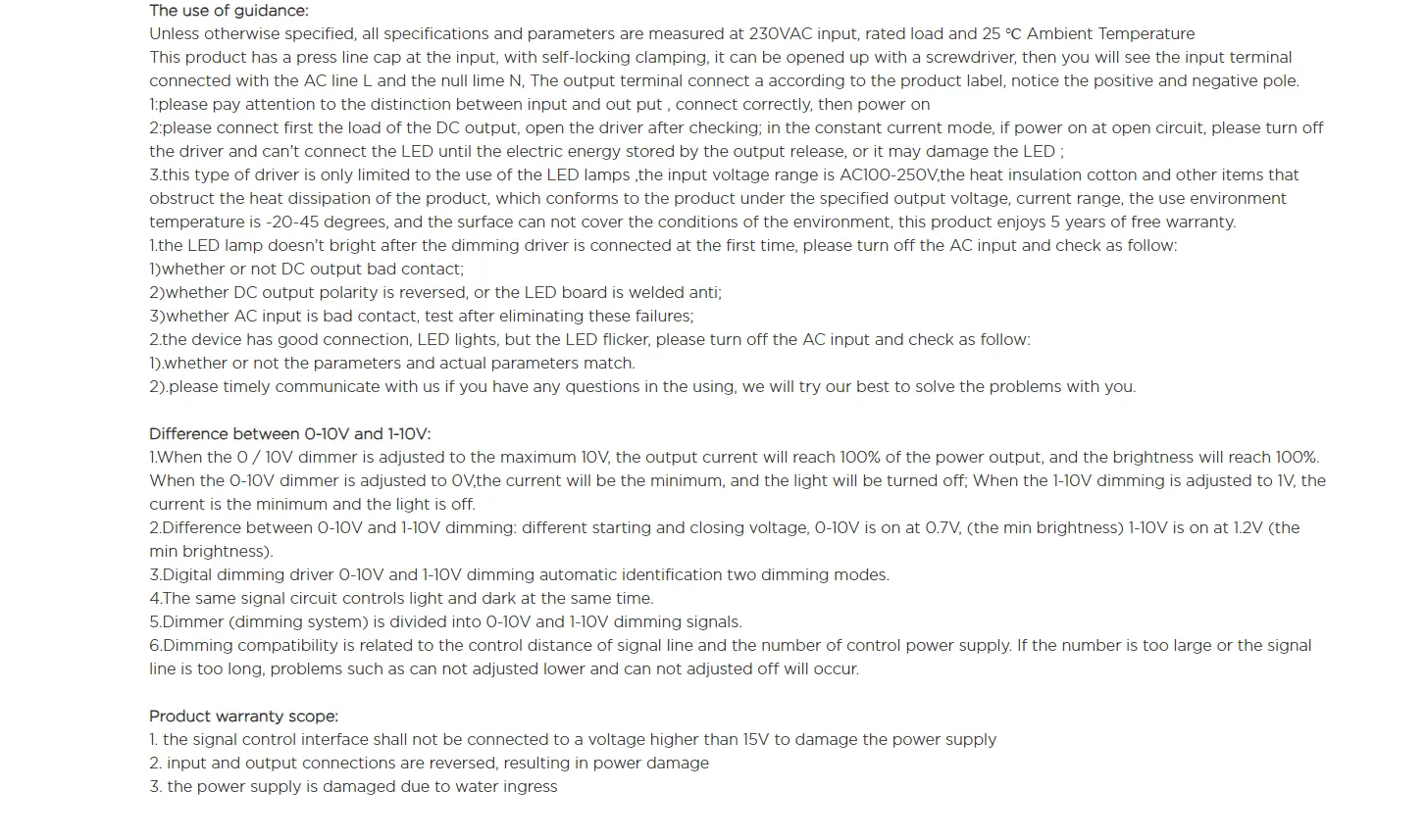 Опремен со стандарден интерфејс за затемнување од 0-10V, поддржува непречено прилагодување на осветленоста од 1% до 100%, компатибилно со повеќето водечки регулатори на пазарот. Може да се пофали со висока енергетска ефикасност до 95% и широк опсег на наизменична струја од 100-277 V, без напор се прилагодува на глобалните стандарди за напон, совршен за меѓународни проекти.