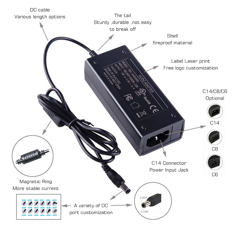 Десктоп адаптерот за напојување STARWELL од 150 W има стандардна влезна порта за напојување IEC C6 и излезен конектор DC од 5,5*2,1 mm — кој служи како професионално решение за напојување за уреди со висока моќност. Точноста на излезниот напон од 150W AC/DC адаптер за напојување е висока до ±2% и ефикасноста на конверзија на моќноста надминува 90%. Има положено CE и FCC сертификати за да се обезбеди безбедност. Адаптерот за напојување STARWELL е идеален за напојување уреди низ канцелариски, забавни и комерцијални сценарија, тој е исплатлива алтернатива на оригиналните адаптери или проширување за потребите на енергија од повеќе уреди.