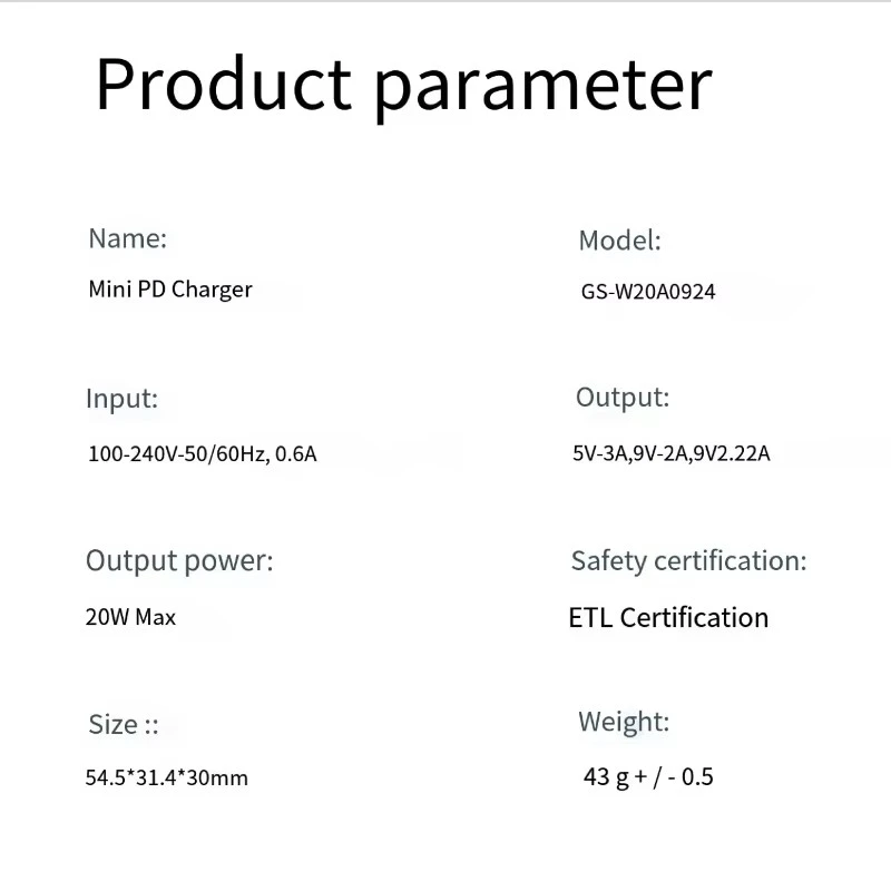 Приклучок за јапонска верзија 20W Спецификација на PD полнач: