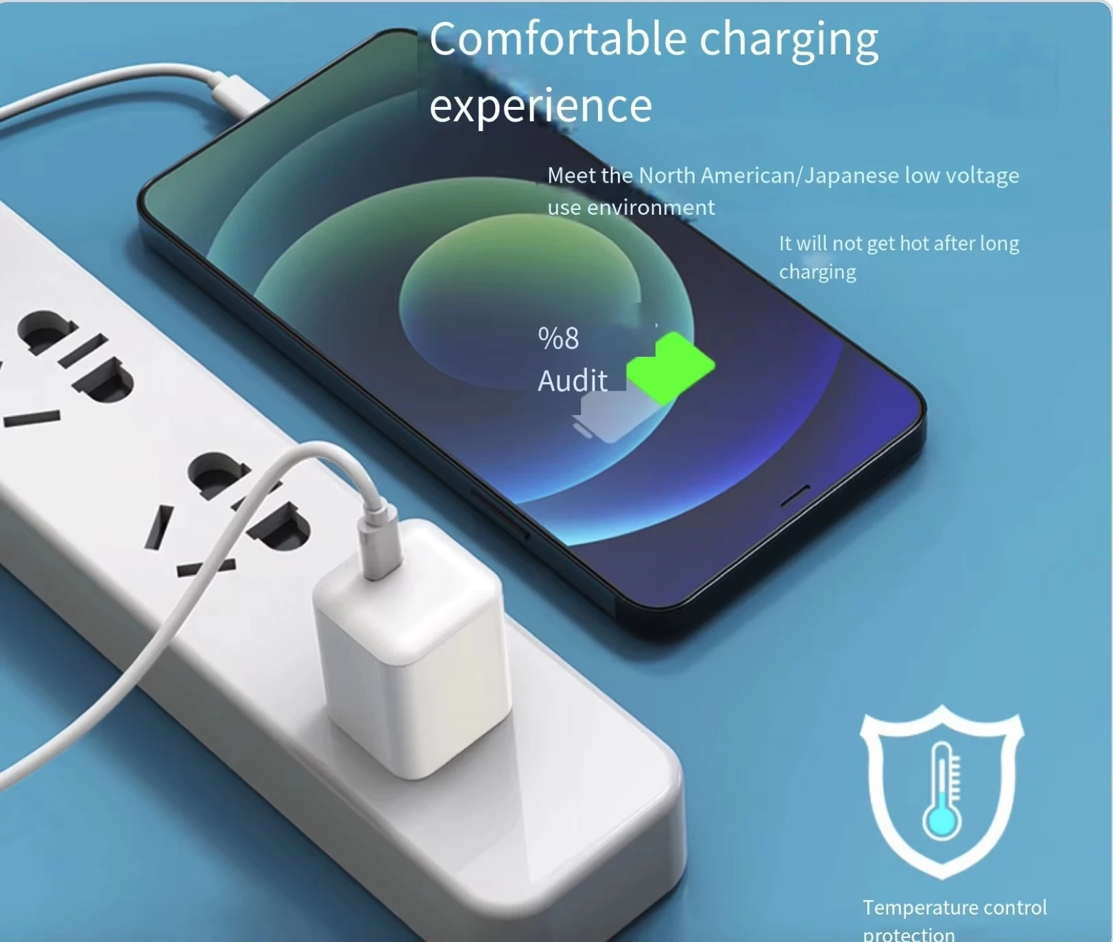 STARWELL висококвалитетниот 20W Јапонија приклучок брз полнач, исто така наречен 20W PD брз полнач со порти USB-C и Type-C, поддржува брзо полнење за iPhone и уреди со Android, достигнувајќи 0-50% за 30 минути. Се одликува со повеќекратни заштити, вклучително и прекумерна струја, прекумерен напон и краток спој, обезбедувајќи безбедни и сигурни перформанси. Направен од огноотпорен материјал за компјутер, ги исполнува CE и ETL сертификатите, нудејќи усогласеност со безбедносните стандарди на ЕУ и подобрување на пристапот на пазарот.