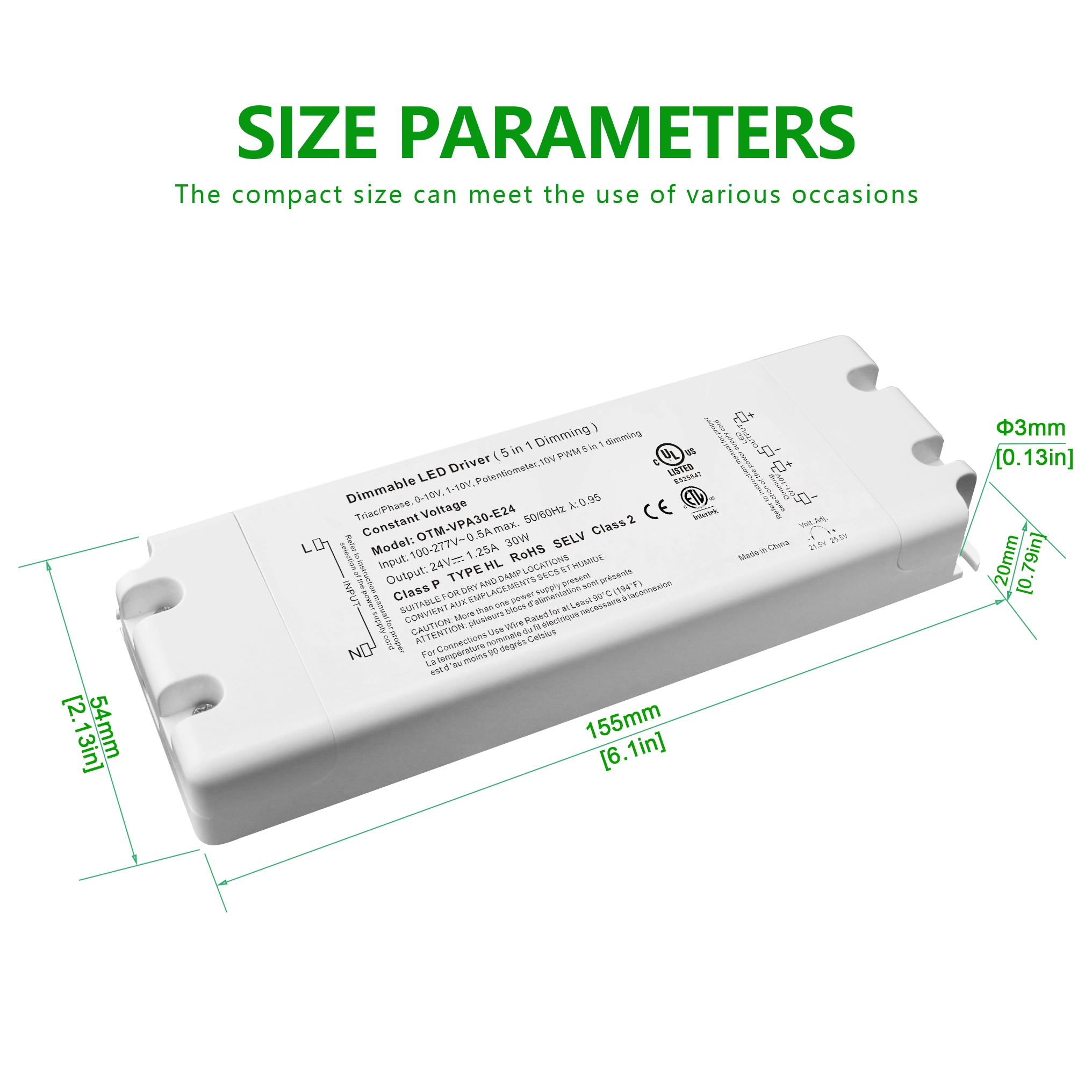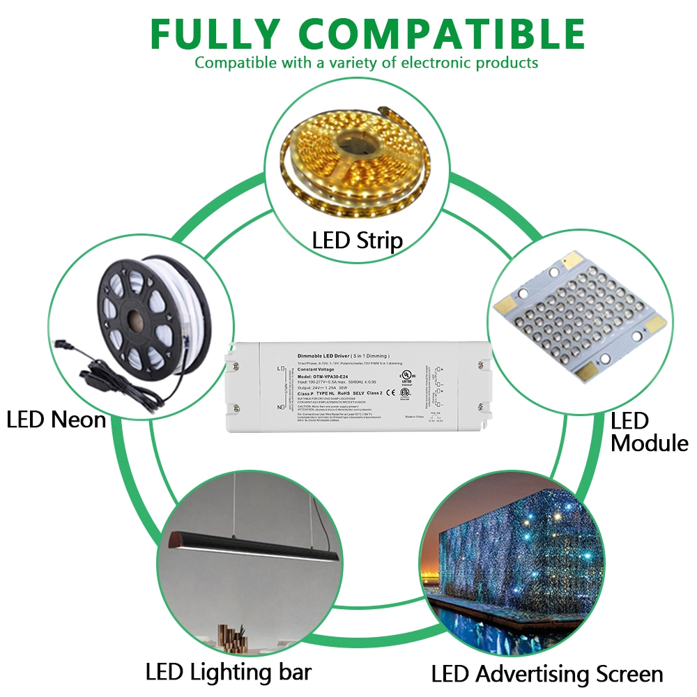 2. Стабилен излез на константен напон: ЛЕД двигателот со постојан напон од 0-10V обезбедува фиксен излезен напон од 24V со стапка на регулација на напонот од ± 2% и бранување од ≤ 120mVp-p, што гарантира постојана изведба на LED диоди.