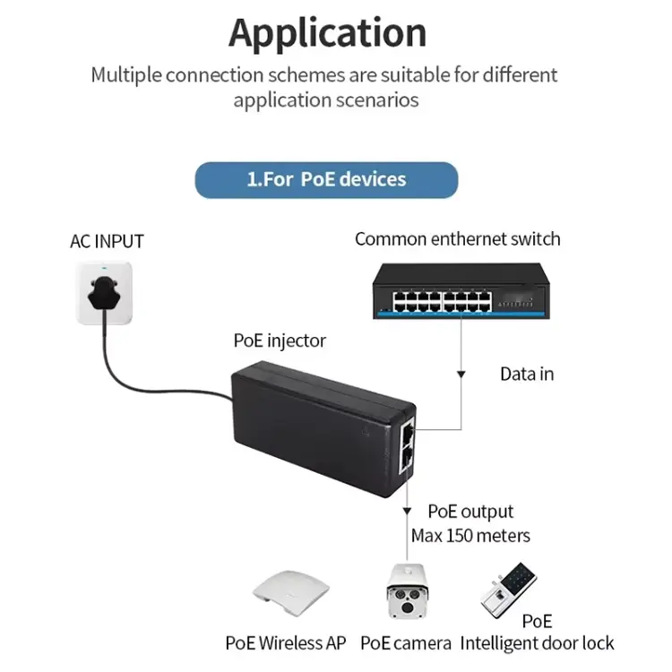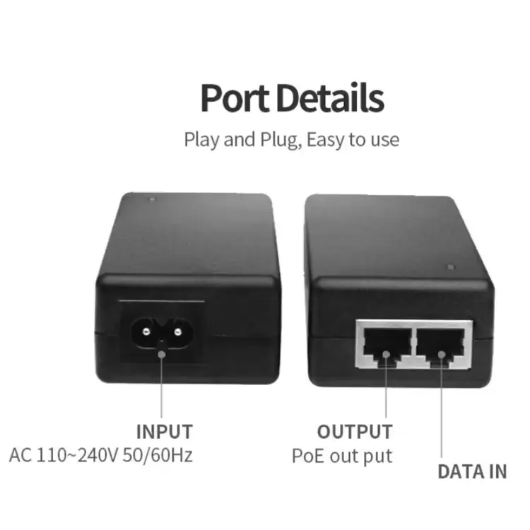 Овој пасивен PoE инјектор користи директен пренос на енергија без протоколарно ракување, намалувајќи ја сложеноста на системот и подобрувајќи ја компатибилноста со специфична мрежна опрема.