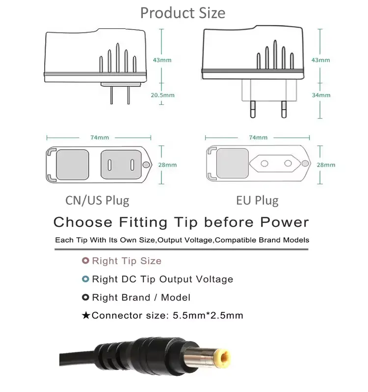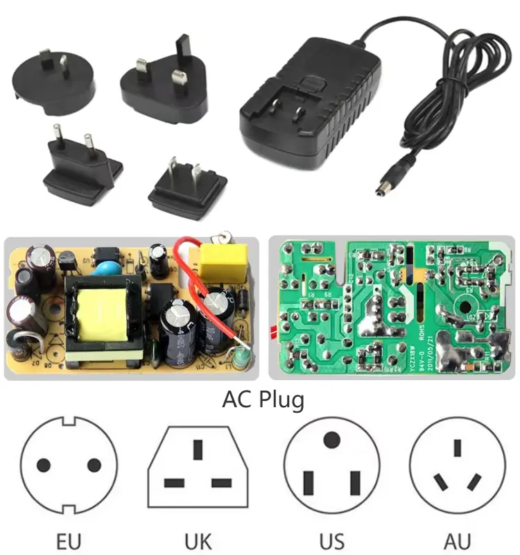 Висококвалитетниот адаптер за напојување од 24 W го нуди кинескиот производител Starwell, нашиот овој адаптер има видови на приклучоци, како што се приклучоците од САД, Велика Британија, ЕУ и АУ.