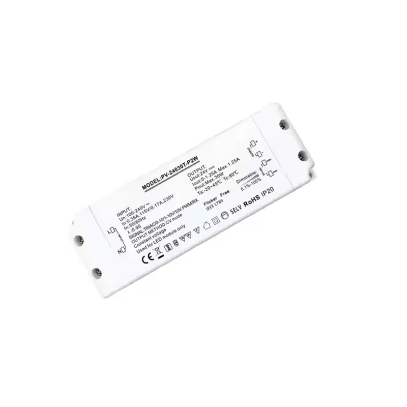 Висококвалитетен двигател за триак за затемнување со постојан напон од 30 W е понуден од кинескиот производител Starwell, кој е повеќенаменски двигател за триак за затемнување со постојан напон со високи перформанси, специјално дизајниран за системи за LED осветлување кои бараат прецизна контрола на светлината. Компатибилен е и со традиционалното затемнување со најсовремена фаза (Triac) и со напредните 0-10V аналогни протоколи за затемнување, кои функционираат како 30W Triac 0-10V затемнети LED драјвер, обезбедувајќи им на корисниците флексибилност за инсталација и приспособливост на сцената.
