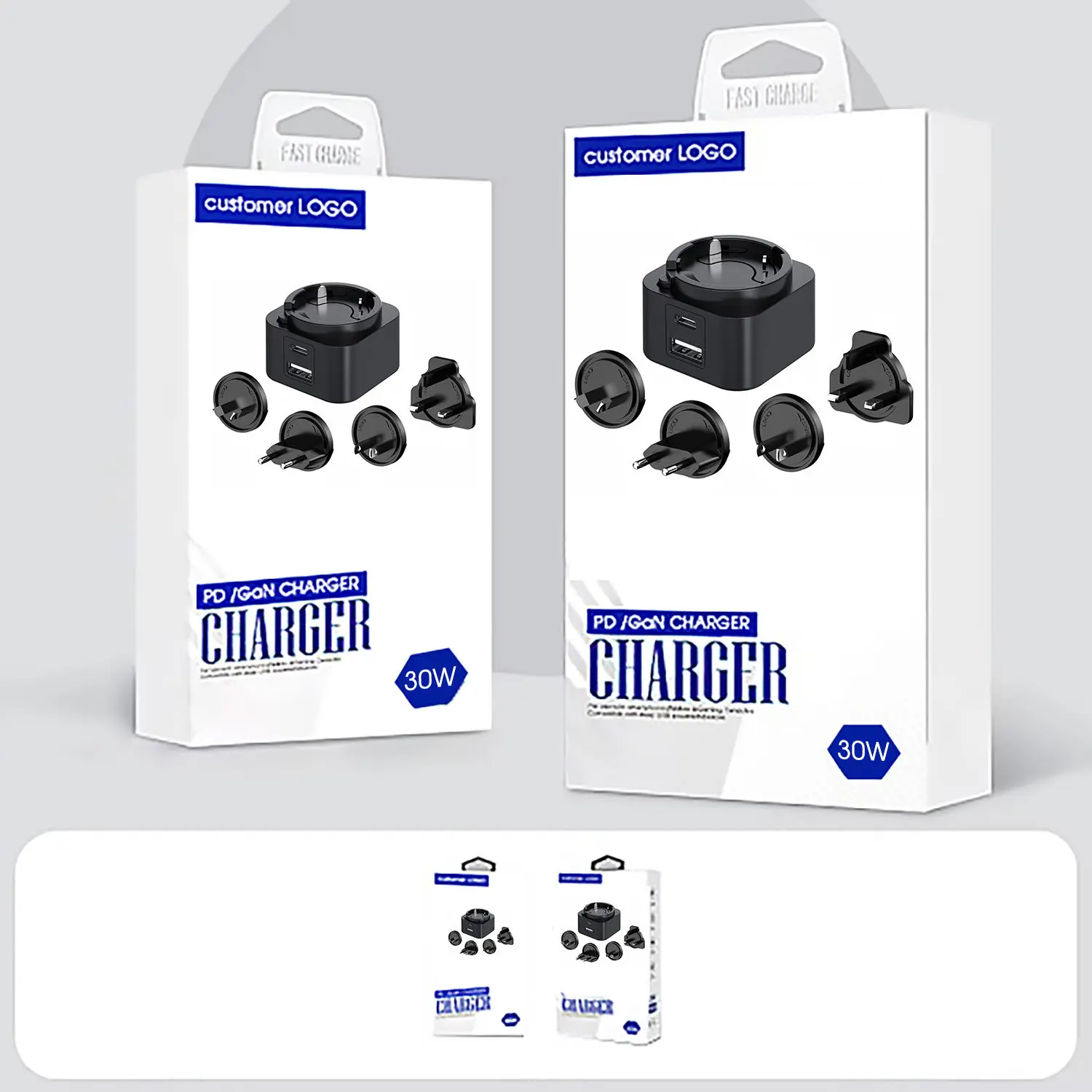 30W USB ѕиден PD полнач со заменливи приклучоци |