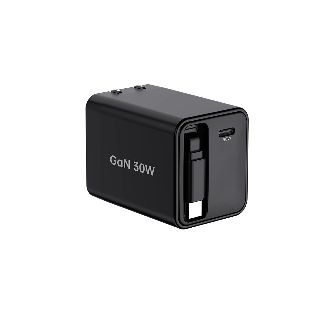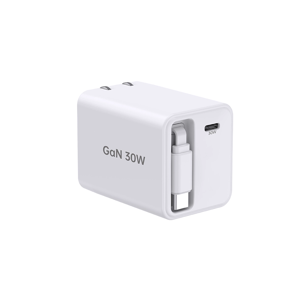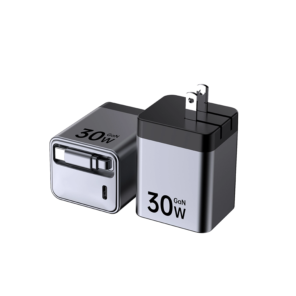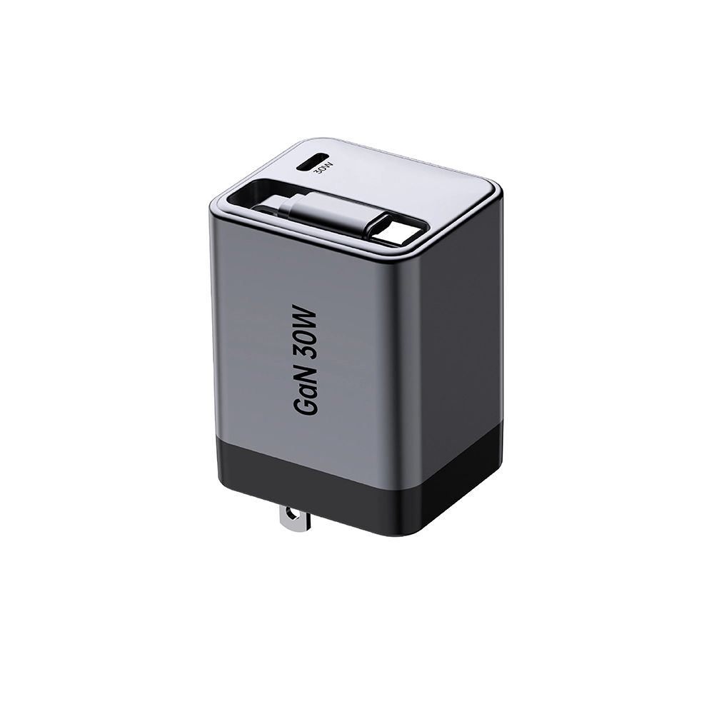 Брз полнач што се преклопува во САД од 30 W со USB C кабел што се извлекува |