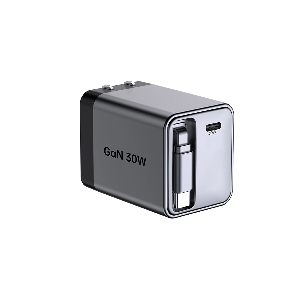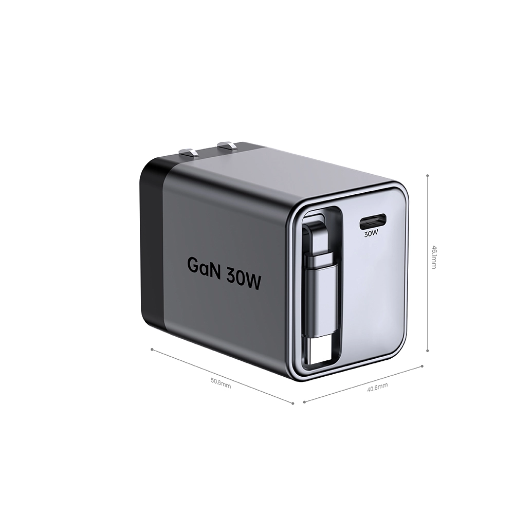 Брз полнач што се преклопува во САД од 30 W со USB C кабел што се извлекува