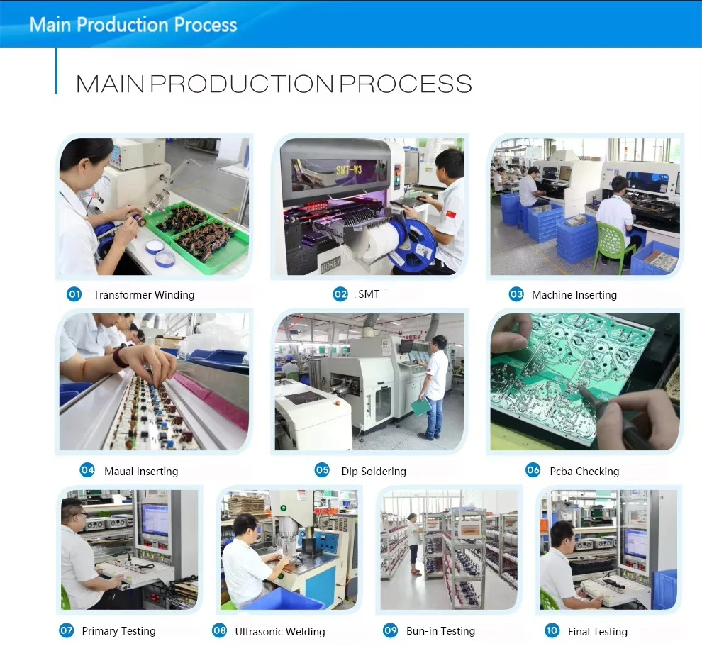 О: Имаме 30-годишно искуство во производство на компанија за напојување со прекинувачи, во моментов, главната цел е дизајнот и производството на преклопно напојување со висока моќност, полначи и адаптери за батерии од 800W се примени за сертификација, може да се стават во производство наскоро.