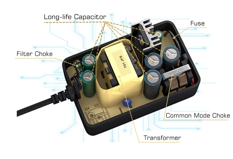 * Повеќе единици за серии 48W: достапни 5V/9V/12V/15V/19V/24V/36V/48V * Безбедност: OCP/OVP/OTP, SCP, автоматско исклучување на преоптоварување, исклучување преку напон, автоматско термичко исклучување. * Широки компатибилности: LED ленти светла, 3D печатач, радио примопредавател, камери за видео надзор, засилувач на сабвуфер за автомобил, аудио засилувач, безжичен рутер, ADSL Cats, овлажнител, HUB, тастатура, BT звучник, монитор, веб-камера, DVR, NVR, аудио/видео напојување