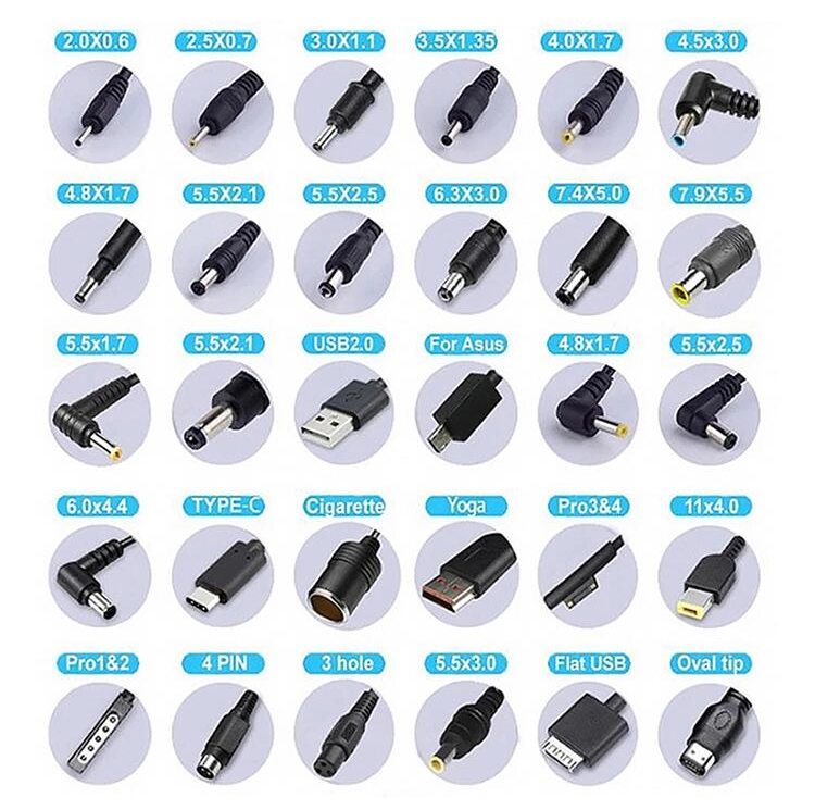 Достапно USB-C, 5,5x2,1mm, 5,5x2,5mm, 4,0x1,7mm, 3,5x1,35mm и повеќе |