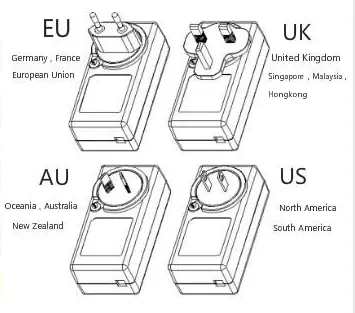 * Универзални приклучоци: САД/ЕУ/АУ/Велика Британија/ЈП и повеќе