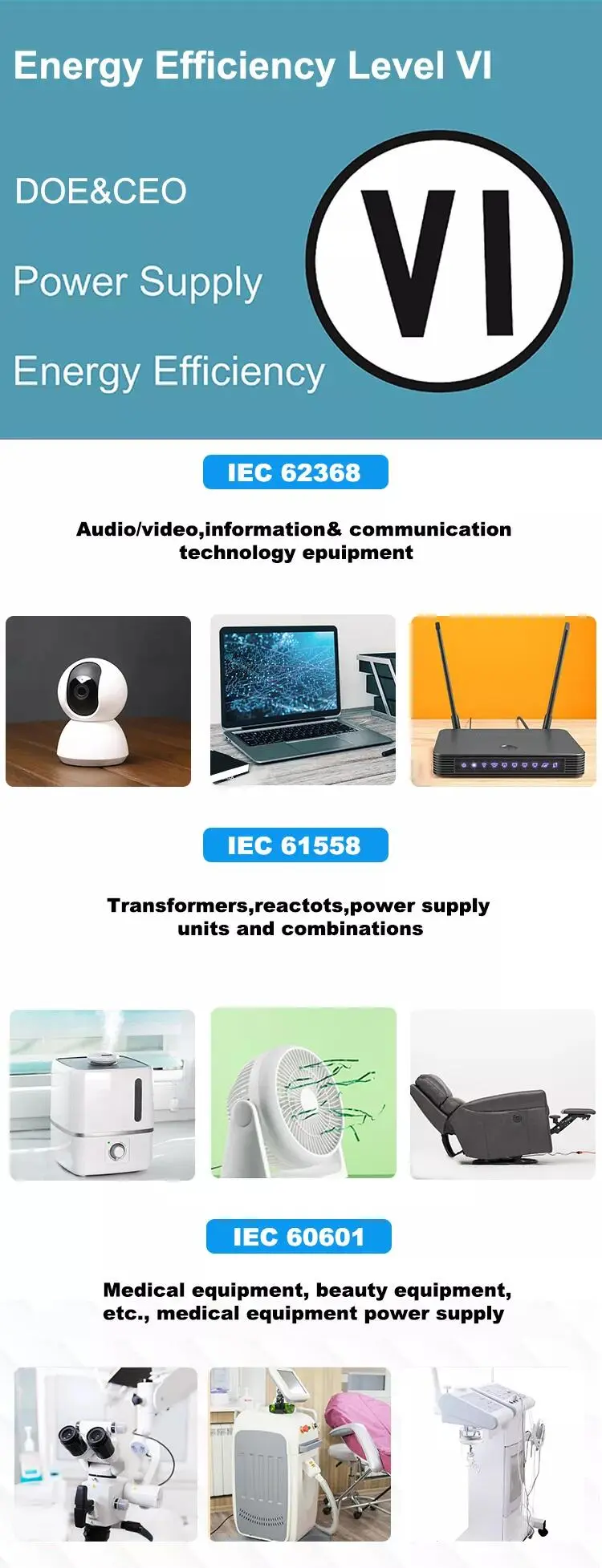 IEC62368 за потрошувачка електроника, IEC60335 за полнач на батерии, IEC60601 за медицинска опрема, IEC61558 за домашна апликација, IEC61347 за LED осветлување. |