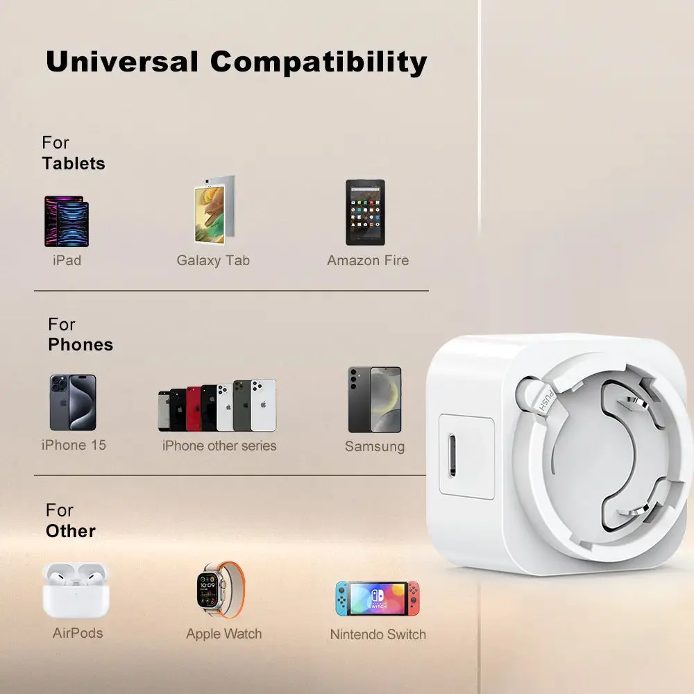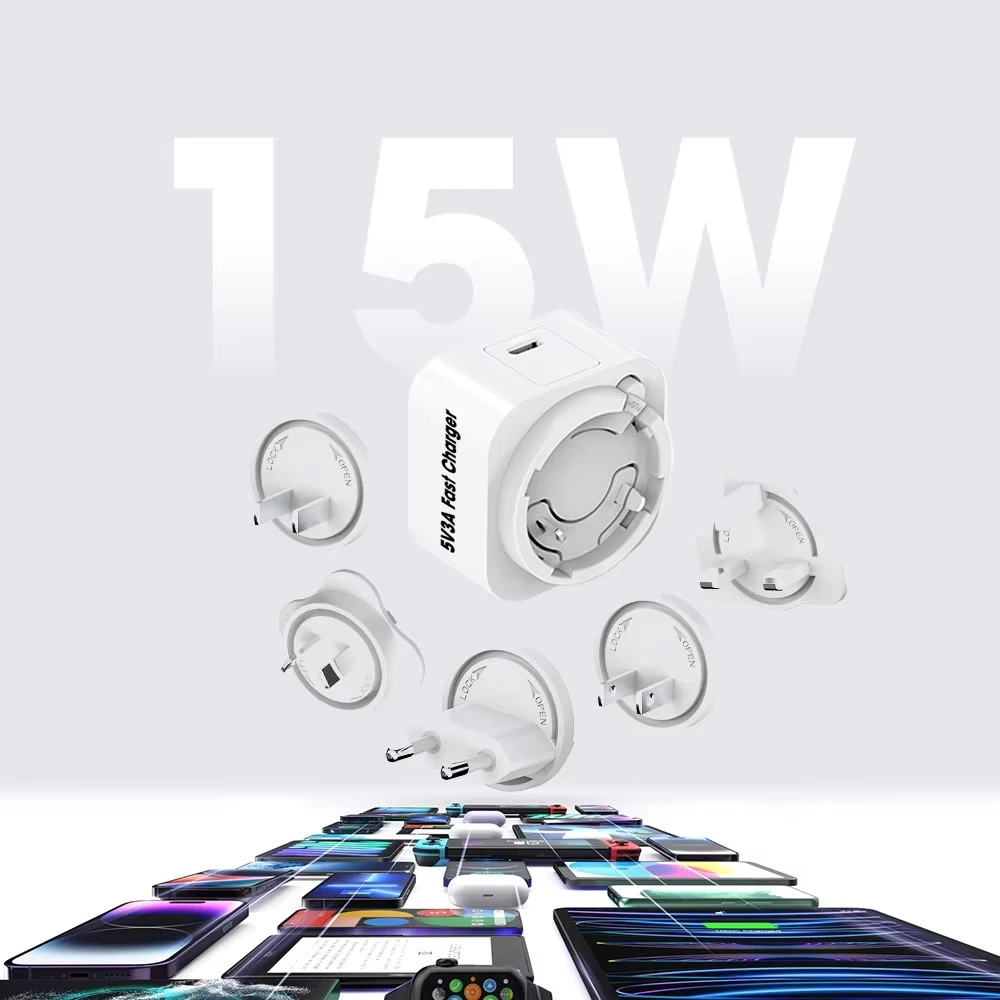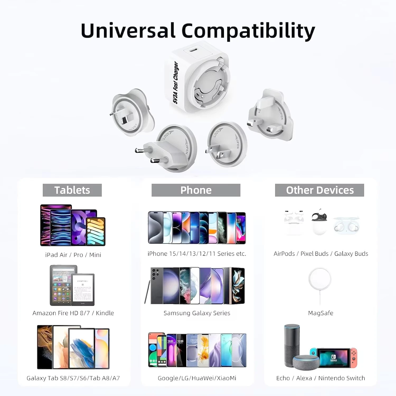 Идеален за напојување на паметни телефони, таблети, преносни звучници и друга електроника, овој адаптер комбинира брзина, безбедност и глобална разновидност во едно компактно решение.