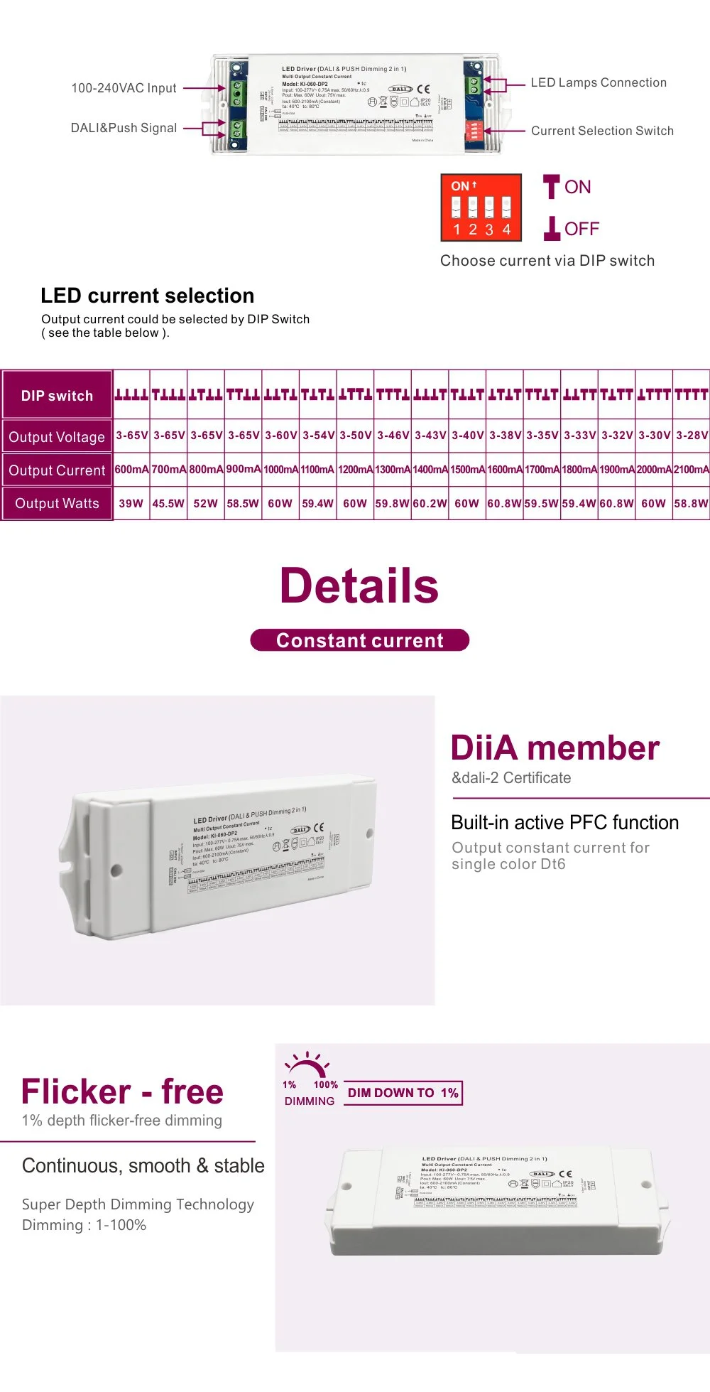 60W константна струја дали затемнува CCT LED драјвер |