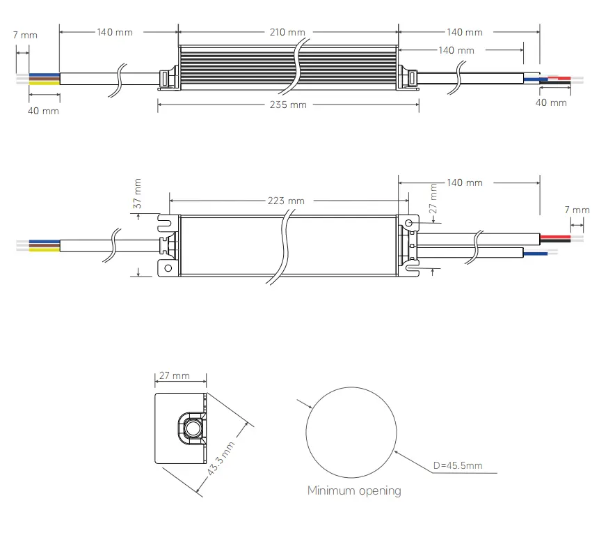 Забелешка 3: Овој двигател за напојување се користи за LED светилки. Опсегот на влезниот напон на овој производ е AC 100-250 V. Кога се користи во наведениот опсег на излезен напон и струја, кога температурата на околината е од -20 ℃ до +45 ℃, а површината не може да биде покриена со памук за изолација од топлина и други предмети што го попречуваат дисипацијата на топлина во услови на употреба на производот пет години. на овој производ.