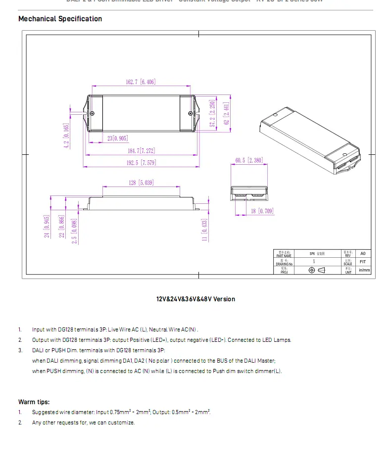 60W постојан напон DALI CCT LED драјвер со затемнување