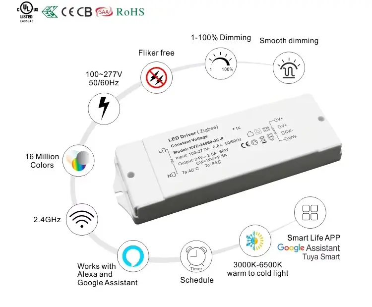 Искусете го совршениот спој на паметно поврзување, прецизна контрола и доверливи перформанси со нашиот драјвер за затемнување ZigBee TUYA од 60 W.