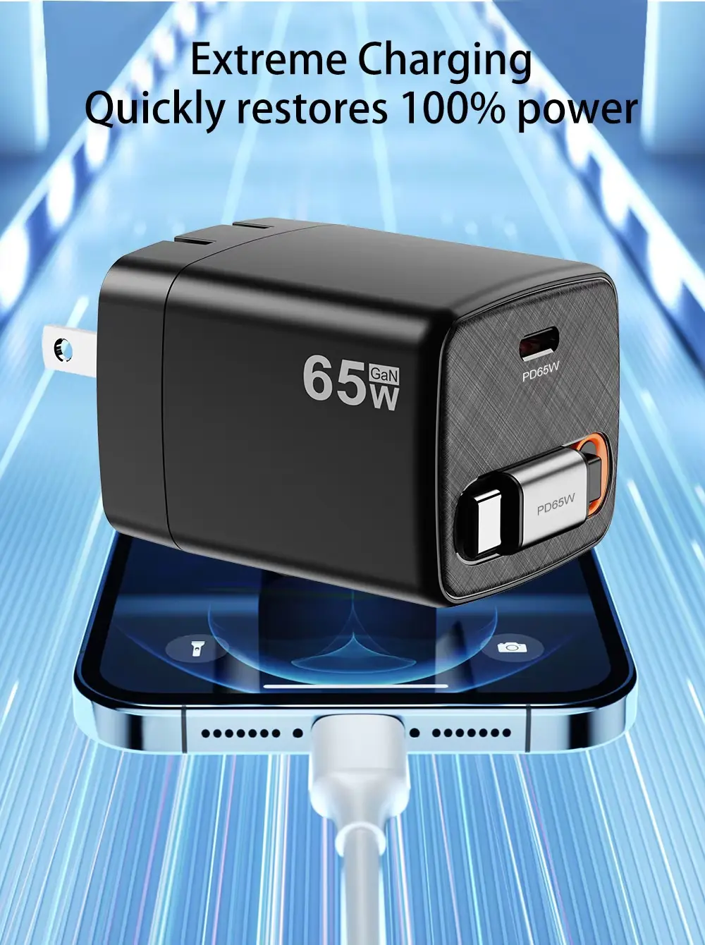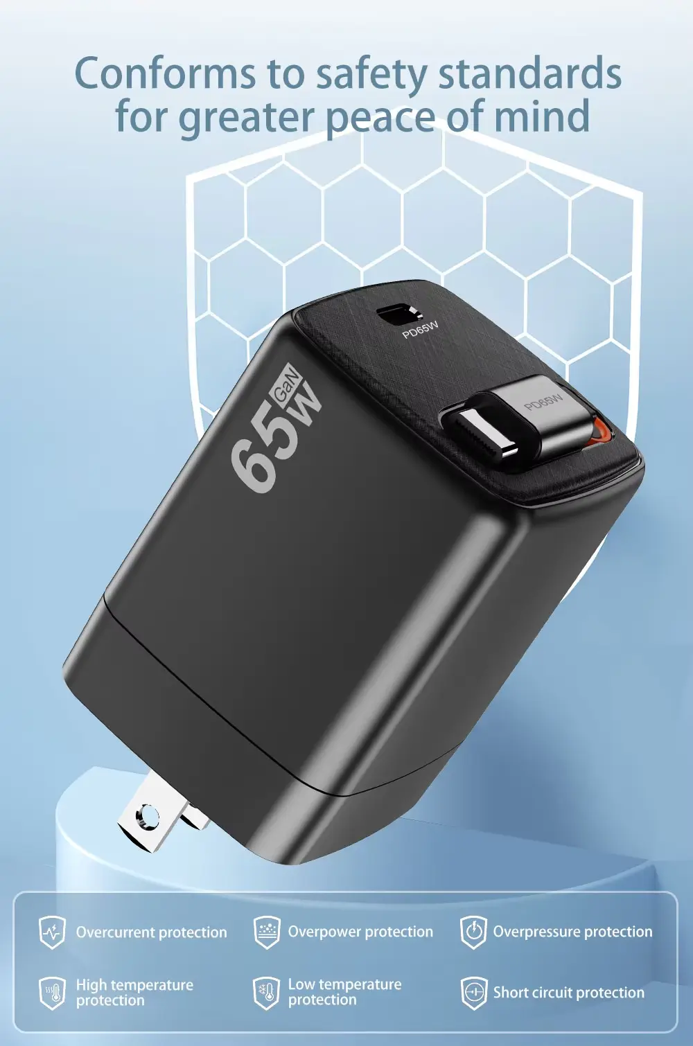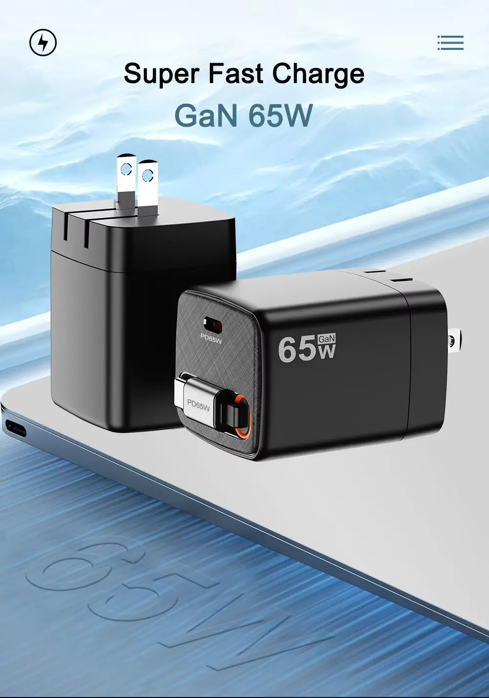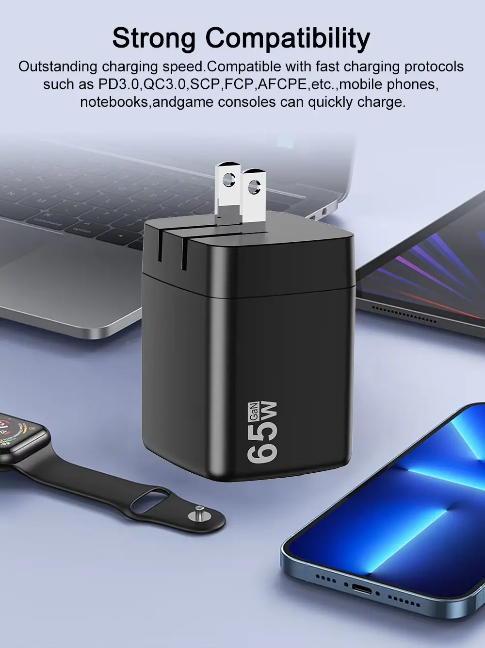 Приспособливо лого Mini 65W PD Gan USB C полнач Преклопен американски приклучок за патен адаптер за телефон Полнач за телефон |
