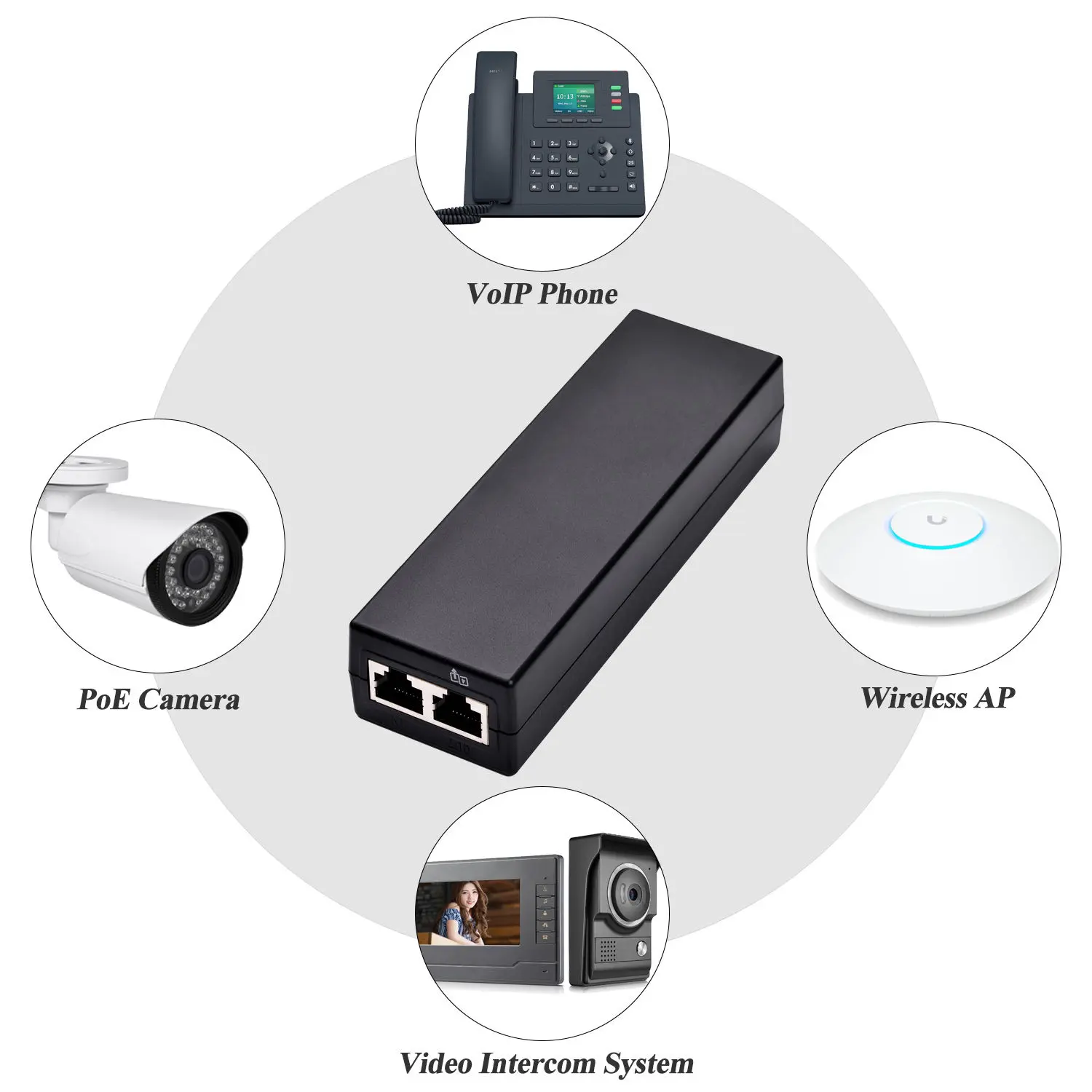 Висока излезна моќност: Поддржува излез до 30W, ефикасно напојување и поврзување на мрежни уреди како што се IP камери, безжични AP и VoIP телефони.