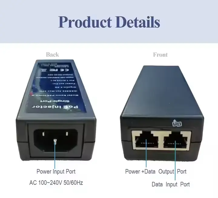 Како професионален производител на напојување во Кина, Starwell го претставува својот 802,3afat 48V 30W 1000Mbps Gigabit Ethernet PoE инјектор. Овој уред поддржува автоматско преговарање 10/100/1000Mbps/2,5G и има повеќе кола за заштита од прекумерна струја, пренапон и кратки кола. Со оперативен температурен опсег од -20°C до 50°C, погоден е за различни мрежни уреди како што се IP камери, безжични AP и VoIP телефони. Производот има добиено сертификати вклучувајќи CE, FCC и RoHS и доаѓа со гаранција од 3 години.
