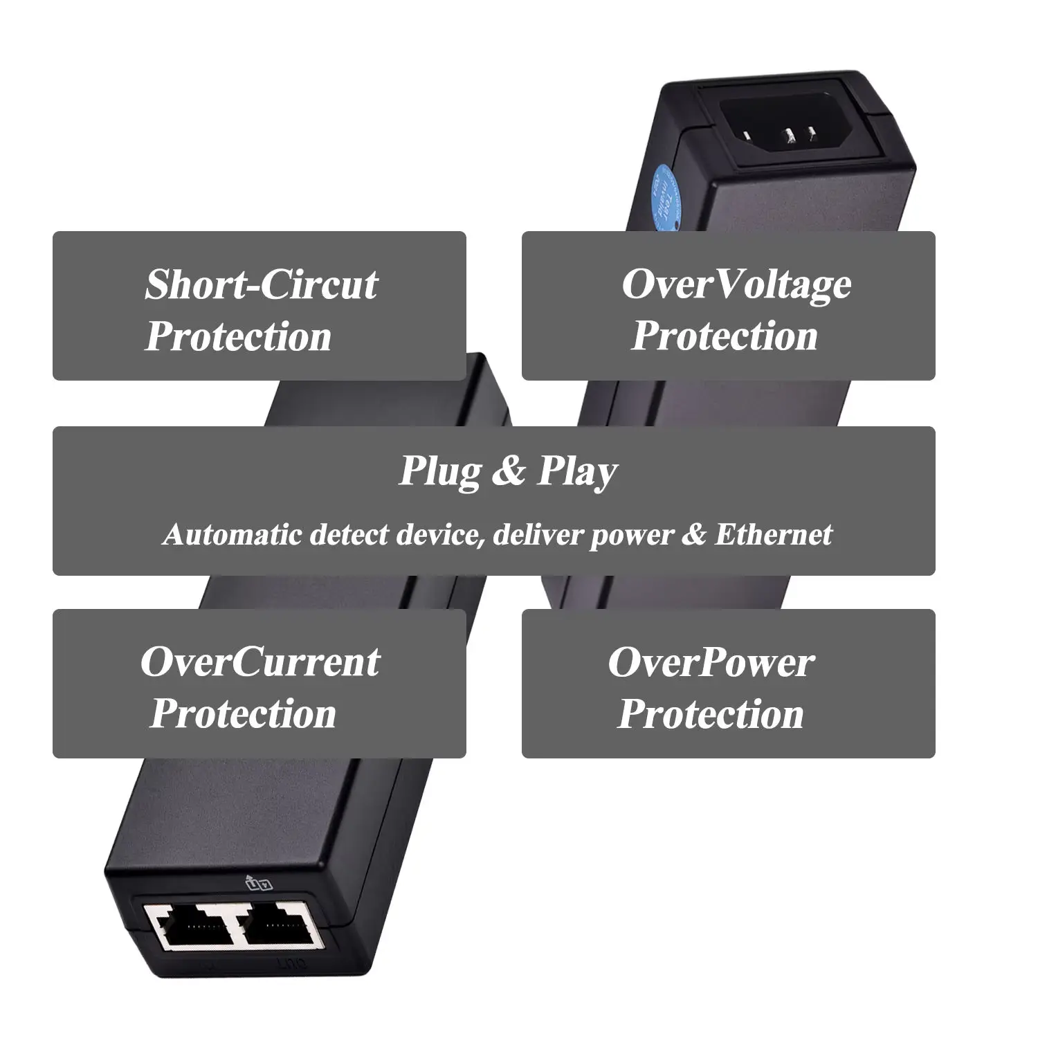 Паметно управување со енергија: се одликува со технологија за автоматско сензорирање за безбедно откривање и усогласување со барањата за напојување, заштитувајќи ја поврзаната опрема од оштетување.