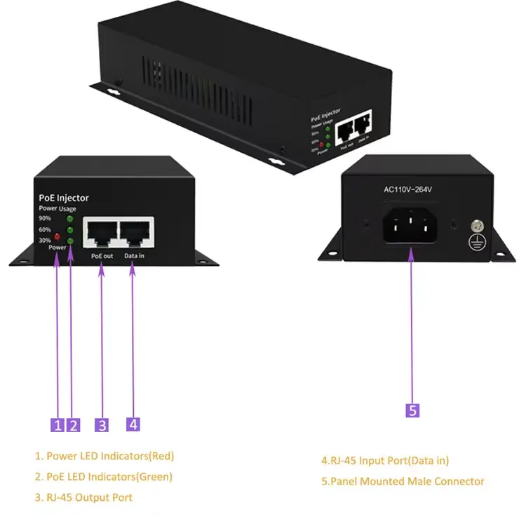 Како професионален производител на напојување во Кина, Starwell претстави 90W Metal Case IEEE802.3bt Gigabit PoE Injector кој целосно одговара на стандардот IEEE 802.3bt. Поддржува излез од 52V, испорачува максимална моќност од 90W по порта и е компатибилен наназад со стандардите 802.3af/at.