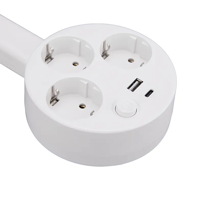 Претворете еден осамен ЕУ штекер во компактен штекер со 5 штекери. Дизајнот што може да се прошири, што се извлекува ви овозможува да додавате приклучоци без да ги блокирате соседните приклучоци, додека интегрираната безбедносна бленда и заштита од преоптоварување ги чуваат уредите — и вашето семејство — безбедни. Неговиот тенок профил кој го гушка ѕидот исчезнува зад бирото, ноќните маси или кујнските пултови, обезбедувајќи чиста, без напојување напон од 230 V токму онаму каде што ви треба. Без завртки, без кабли - само приклучете, издолжете и напојувајте.