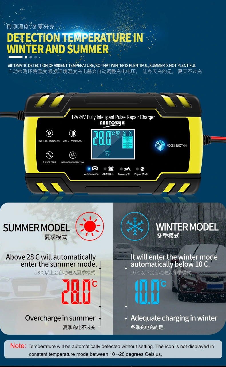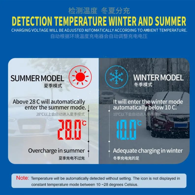 · Режим на автоматско одржување: функционира како полнач за капки и долгорочен одржувач на батерии, идеален за сезонски или ретко користени возила.