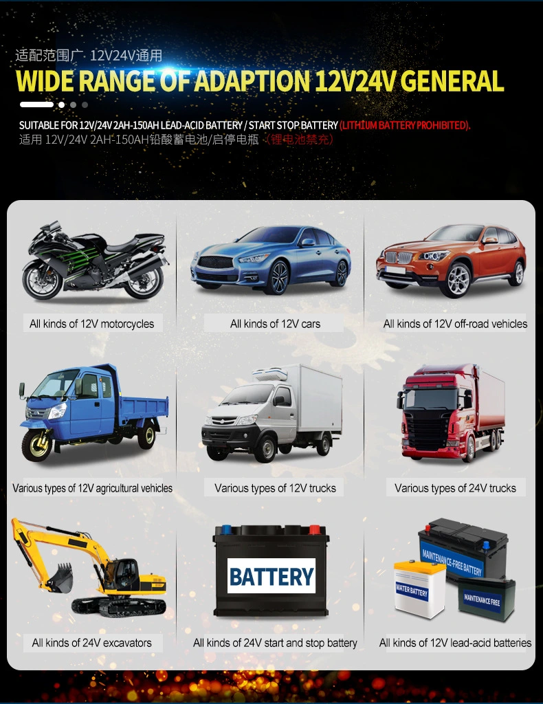 · Широка компатибилност со батерии: Работи со AGM, EFB, GEL и стандардни оловно-киселински батерии (старт-стоп), обезбедувајќи флексибилна примена кај модерните и традиционалните системи.