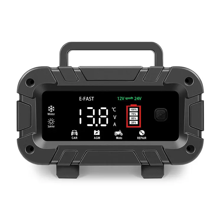 Универзален полнач за батерии од 12V 24V TK700 од Starwell, професионален производител и добавувач во Кина, е интелигентен систем за полнење со високи перформанси дизајниран за широк опсег на батерии со оловна киселина. Направен за автомобилски, поморски, индустриски и итни апликации за напојување, тој комбинира автоматско откривање на напон, напредна технологија за поправка и стабилна излезна контрола за да обезбеди сигурно враќање на енергијата и долгорочно одржување на батеријата. Универзалниот полнач за батерии од 12V 24V TK700 е конструиран да обезбедува брзо полнење и длабоко одржување во една компактна единица.