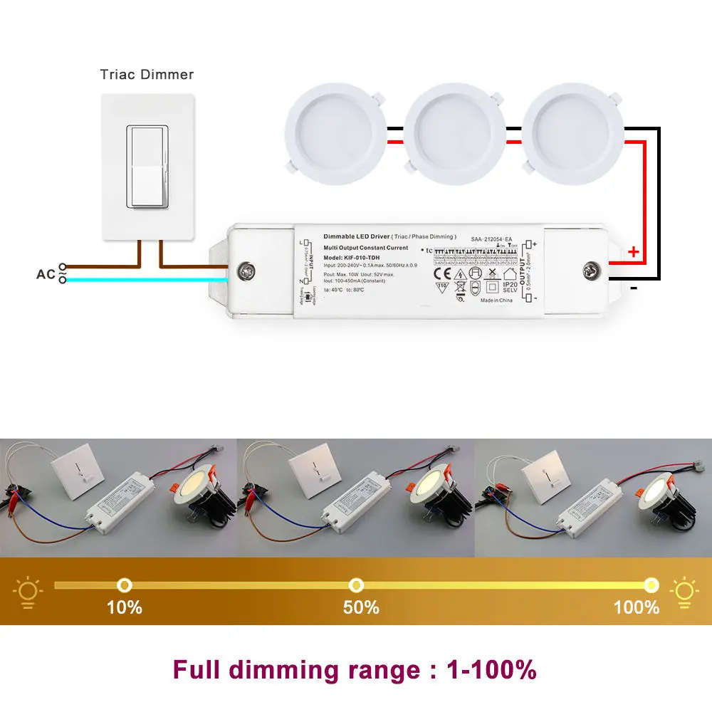 Спецификација на драјвер за лед со затемнување на Starwell Constant Current IP20 Triac: