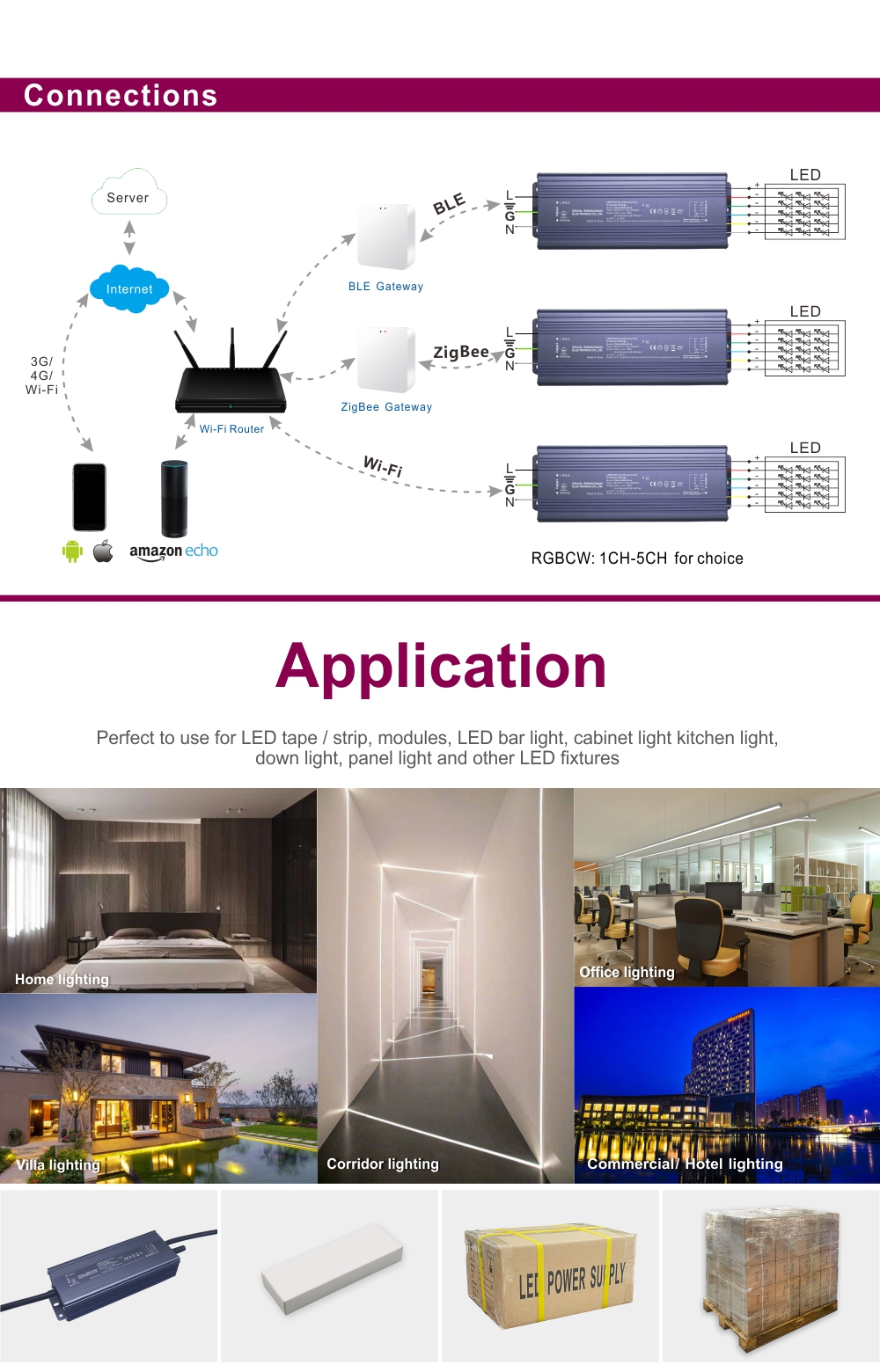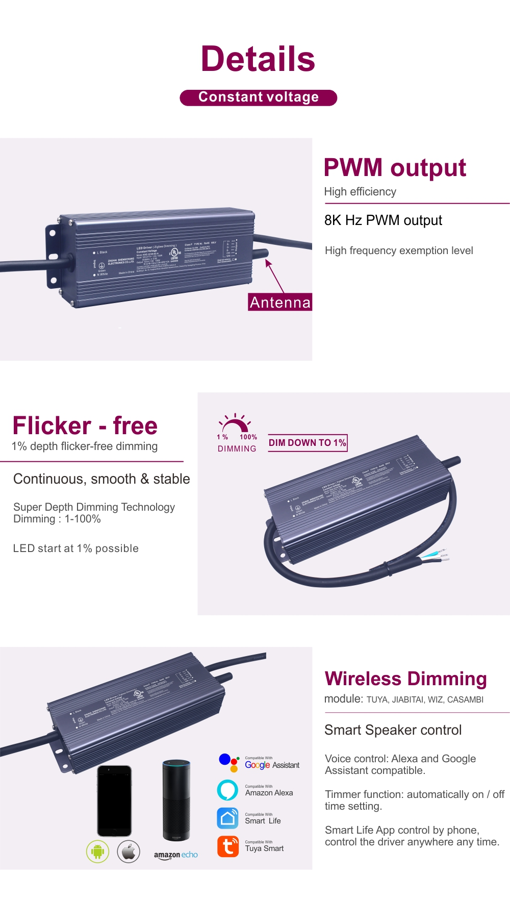 Длабоко интегриран со екосистемот Tuya Smart, овој ЛЕД драјвер за безжичен напон со постојан напон од 120W Tuya Zigbee го користи најновиот протокол за комуникација Zigbee 3.0 за беспрекорна, двонасочна комуникација.