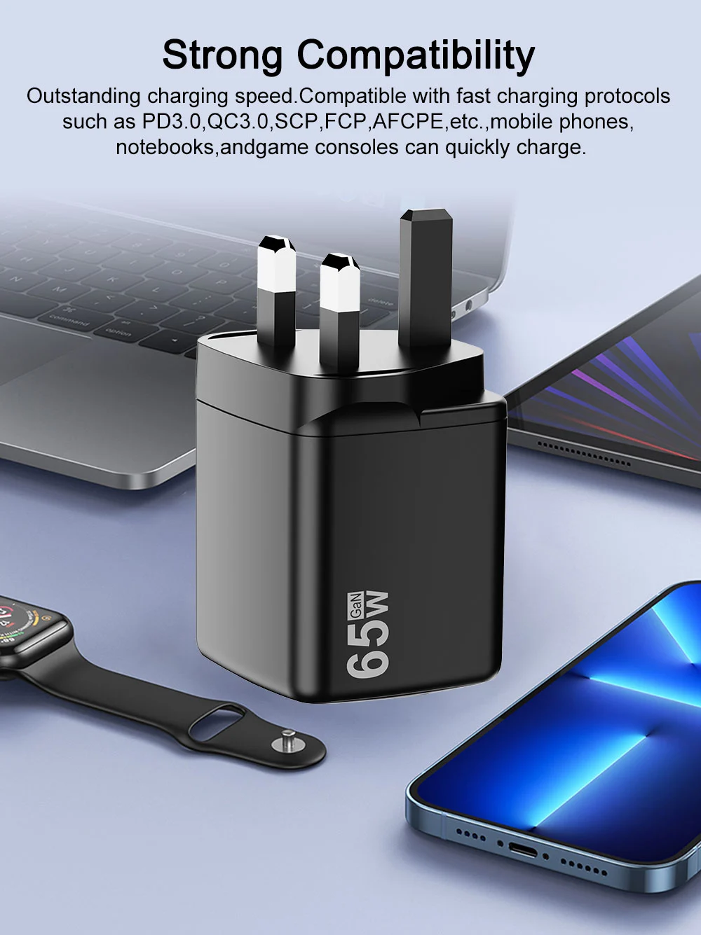 STARWELL, доверлив кинески производител, го испорачува овој висококвалитетен, достапен брз полнач од 65w приклучок од Велика Британија.